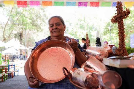 Durante la Feria del Cobre participarán 15 personas artesanas provenientes de 13 comunidades con la venta de sus piezas en diversas ramas como Textiles, Alfarería, Laca Perfilada, Fibras Vegetales, Molcajetes, Juguete, y Madera, en la plaza principal de este lugar.