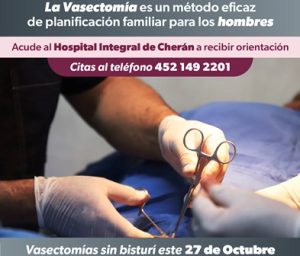 La Secretaría de Salud de Michoacán (SSM) realizará en Cherán vasectomías sin bisturí para atender a la población con paternidad satisfecha y que no desean tener hijos. Así que la jornada será el 27 de octubre en las instalaciones del Hospital Integral.