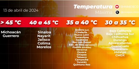 Pronóstico de temperaturas máximas para hoy sábado 13 de abril de 2024: