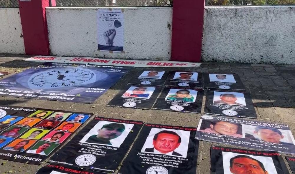A las afueras de la entrada principal del complejo deportivo Ejército de la Revolución se congrega un grupo de madres buscadoras portando pancartas con las fotos de sus hijos o desaparecidos en este 10 de Mayo en que, para ellas, no es un día de fiesta sino un día de alzar la voz en memoria de quienes no han regresado y a quienes esperan encontrar.