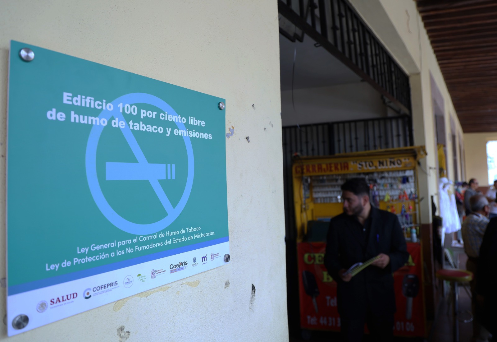 De manera simultánea, la Dirección de Mercados y Plazas de Morelia fue declarada espacio libre de humo, por el titular de la Comisión para la Protección contra Riesgos Sanitarios (Coepris), Hebert Flores Leal; el director de Salud Mental de Michoacán, Carlos Bravo Pantoja; y Marco Antonio Garibay González, director Mercados de Morelia, quienes desvelaron la placa que acredita al inmueble como un espacio donde se protege al no fumador.