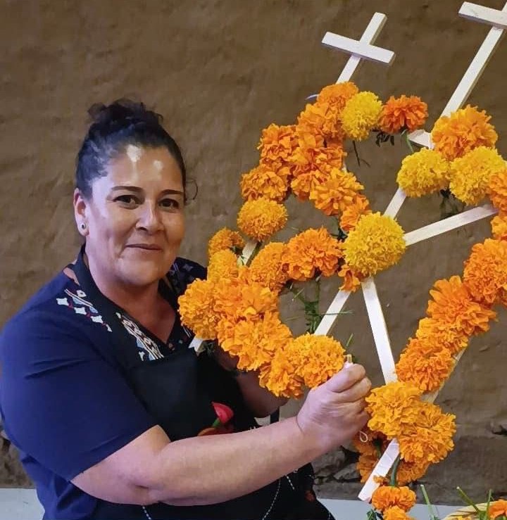 Los asistentes son guiados paso a paso para la elaboración de estos tradicionales arcos que se encuentran en los panteones el 1 y 2 de noviembre, realizados para recibir a los que se adelantaron en el camino.