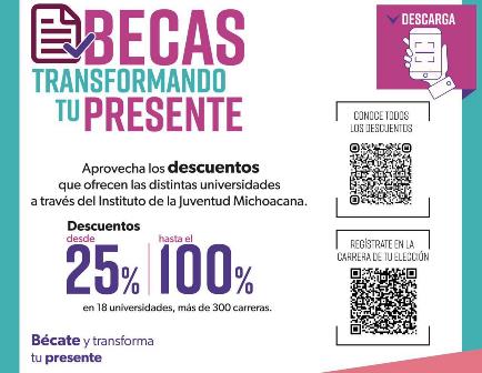 Para poder acceder a las becas, los interesados deberán registrarse a través del siguiente enlace: https://n9.cl/ijumich, o enviar un correo electrónico a depto.desercion.escolar.ijumich@gmail.com.