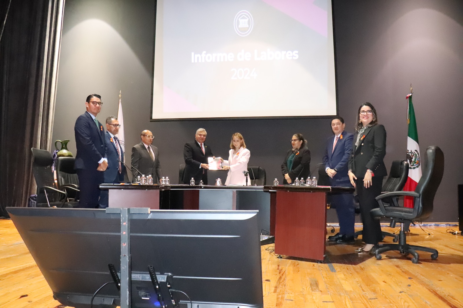 Acompañada por el presidente de la Mesa Directiva del Congreso local, Juan Antonio Magaña de la Mora, Puebla Solórzano detalló que se emitieron 56 acuerdos jurisdiccionales en procedimientos de ejecución de sentencias, reafirmando la importancia de garantizar el cumplimiento de las resoluciones.