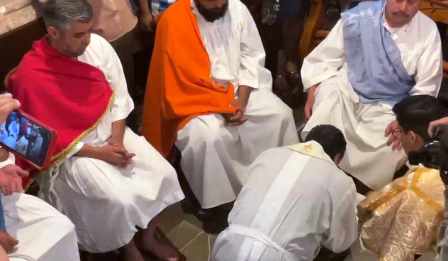 Después de la Homilía, vino el lavatorio de los pies bajo el rito litúrgico previsto en el Misal Romano, y de ello se encargó el padre Juan Manuel Quiroz Armenta, rector de la Catedral de Morelia que lavó y besó los pies de 12 voluntarios que representaban a los apóstoles esta tarde en el Templo Mayor, reviviendo este importante hecho de lo que fue la última reunión de Jesús con sus apóstoles previo a su sacrificio de amor por nosotros.