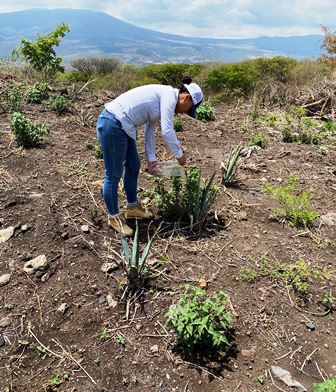 Sahuayo, Mich.- En coordinación con académicos de la Universidad de la Ciénega del Estado de Michoacán (Ucemich), con sede en Sahuayo, técnicos de AgroSano establecieron una parcela demostrativa de plantas de agave que serán complementadas con biofertilizante generado en este programa operado por la Secretaría de Agricultura y Desarrollo Rural (Sader).