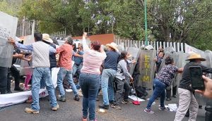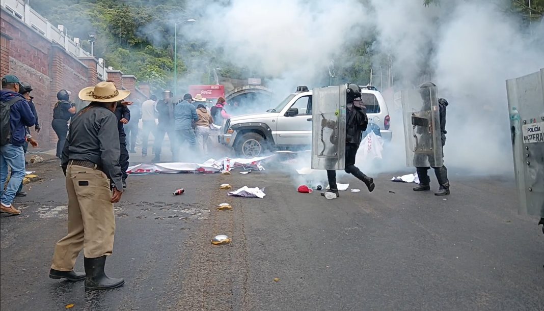 Hubo empujones, gas lacrimógeno y violencia física, los elementos de seguridad se apropiaron de un par de vehículos que pertenecían a comuneros