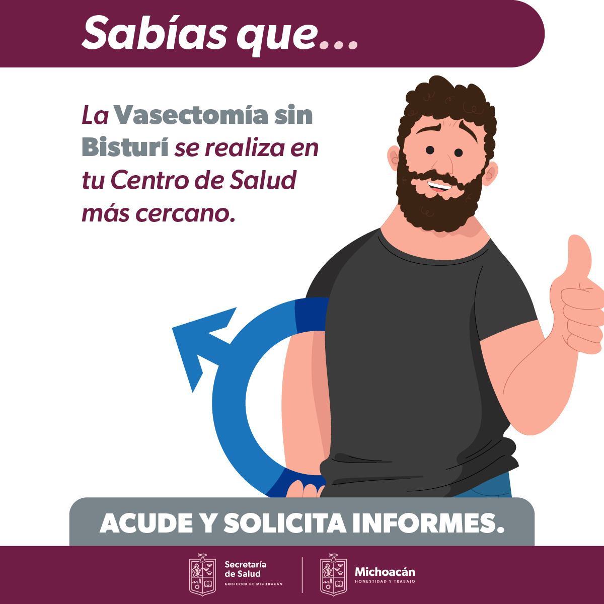 Morelia, Michoacán.- La Secretaría de Salud de Michoacán (SSM), refuerza y promueve la paternidad responsable a través de la vasectomía sin bisturí, método anticonceptivo seguro, eficaz, gratuito y que no requiere de hospitalización.