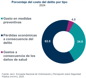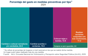 El monto total a consecuencia de la inseguridad y el delito en hogares fue de 269.6 mil millones de pesos (6 mil 226 pesos, en promedio, por persona afectada). Lo anterior se traduce en 1.07 % del Producto Interno Bruto (PIB). Las medidas preventivas que los hogares tomaron contra los delitos ascendieron a 91.8 mil millones de pesos, y las pérdidas por victimización a 177.8 mil millones de pesos. Entre las principales medidas preventivas realizadas por los hogares se encuentran cambio de cerraduras o candados, con 22.8 %, y cambiar puertas o ventanas, con 18.8 %.