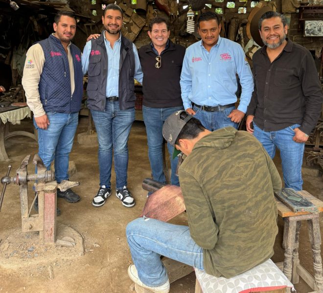 Durante su estancia fue recibido en la Galería Abdón Punzo, para conocer la técnica ancestral del cobre martillado, práctica que ha sido transmitida de generación en generación por los artesanos.