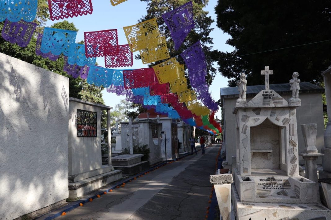 Añadió que se estarán colocando 734 espacios de comercio, en las inmediaciones de los panteones los cuales ofrecerán venta de artículos de las fechas, como flores, velas y demás.