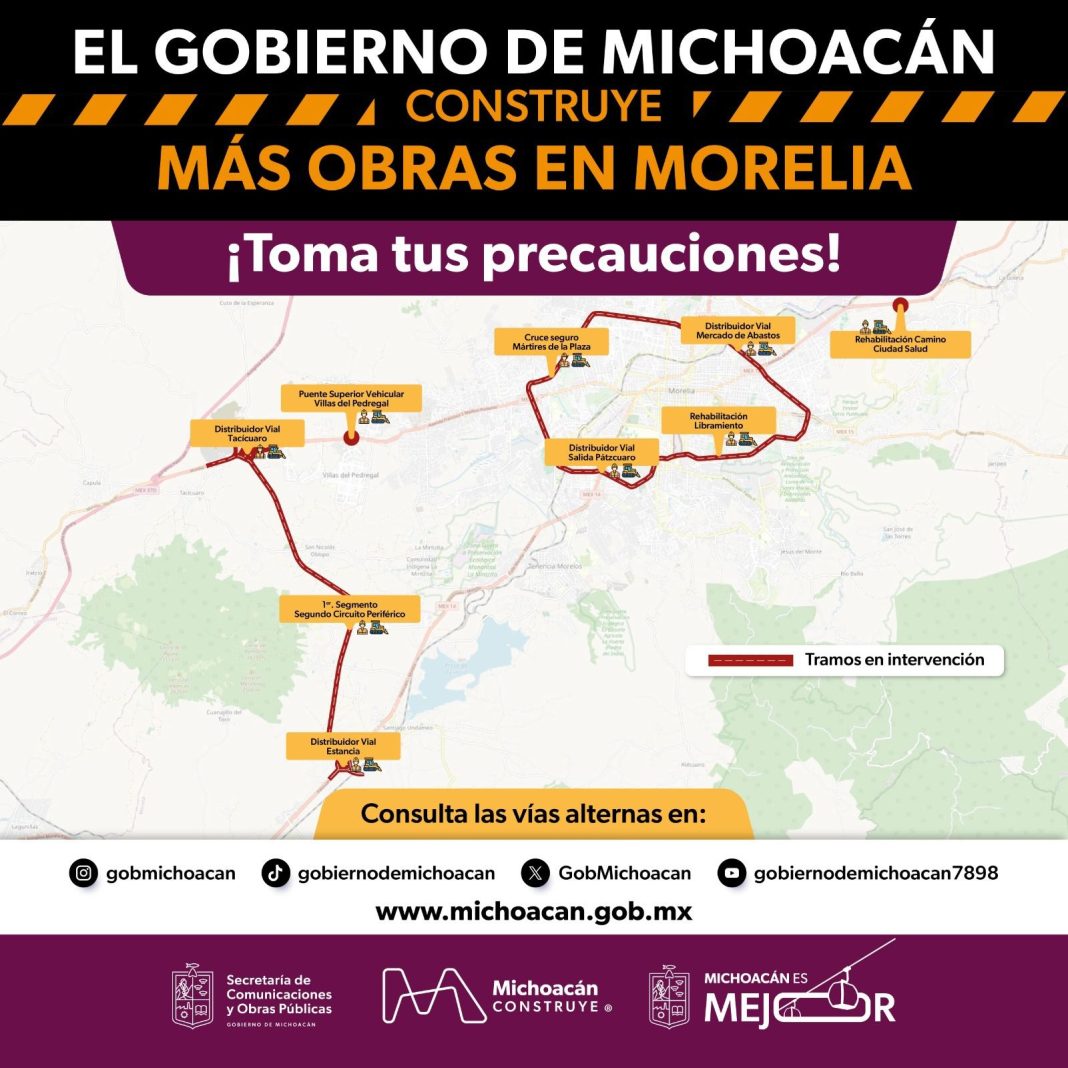 Con el propósito de que la capital michoacana cuente con más infraestructura vial para aminorar el tráfico con seguridad, agilidad y comodidad, el Gobierno de Michoacán a través de la Secretaría de comunicaciones y Obras Públicas (Scop), realiza diversas obras con una inversión superior a los 2 mil 563 millones de pesos, así lo señaló el gobernador Alfredo Ramírez Bedolla.