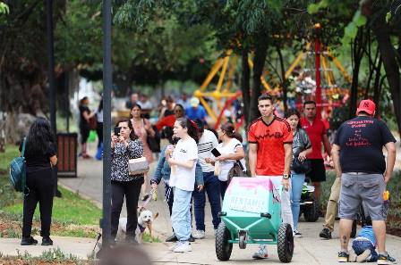El alcalde, Alfonso Martínez y su esposa, Paola Delgadillo, recorrieron el parque este domingo para saludar a las y los morelianos, quienes agradecieron su interés por construir lugares modernos y funcionales para la ciudadanía.
