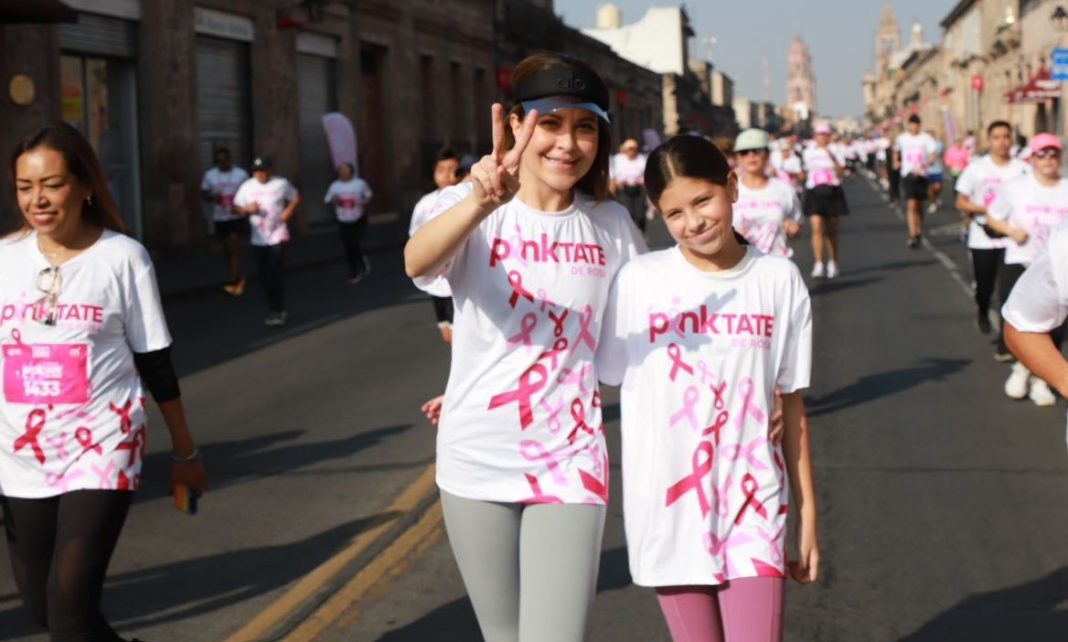 Paola Delgadillo Hernández, presidenta honoraria del DIF Morelia, agradeció a todas las personas que participaron en la Segunda Carrera Atlética “Pinktate de Rosa”, una actividad con causa que reunió a familias, instituciones y empresas en apoyo a mujeres que enfrentan o han superado el cáncer de mama.
