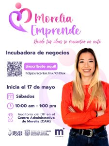 Se realizará de manera gratuita la tercera edición de «Morelia Emprende», a partir del 17 de mayo, con una duración de alrededor de 5 meses en el auditorio del DIF en el CAM