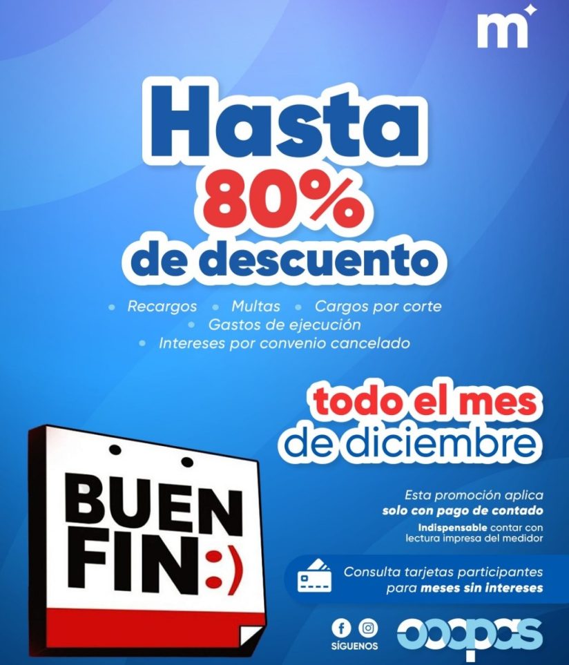 Finalmente reiteró que la promoción consiste en la aplicación de hasta el 80% de descuento en multas, recargos, cargos por corte, gastos de ejecución, entre otros; el pago se podrá realizar en efectivo, con tarjetas de débito o crédito y aprovechar meses sin intereses de las instituciones bancarias participantes.
