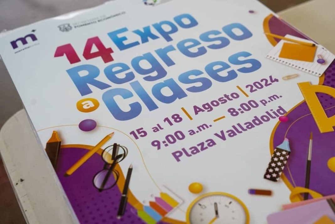 La Secretaría de Fomento Económico local anunció hoy la próxima 14 Expo Regreso a Clases, que tendrá lugar del 15 al 18 de agosto en la Plaza Valladolid, donde estarán más de 50 expositores ofertando a «precios justos» útiles escolares, uniformes, papelería, calzado y artículos como mochilas, entre otros, además de descuentos en la canasta básica escolar integrada por libretas, lápices, bolígrafos, juego de geometría, gomas, pegamento, plastilina y sacapuntas.