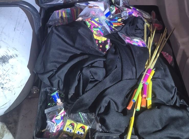 Entre los productos con pólvora asegurados se encuentran “palomitas”, cohetones, bengalas y fuegos artificiales diversos que ponen en peligro la vida de quien los vende y los compra, así como de terceros.