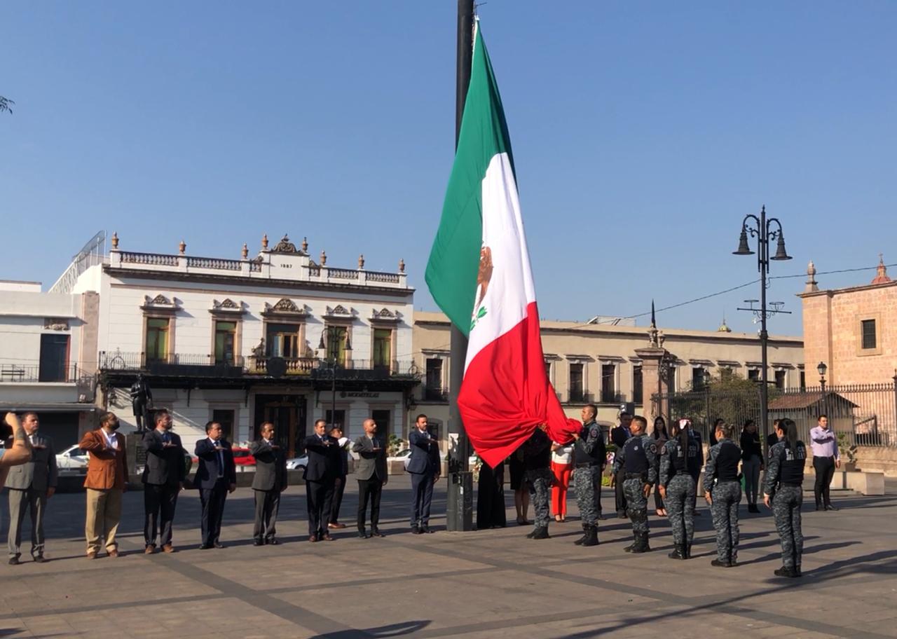 Autoridades del ayuntamiento rindieron honores a la Bandera.