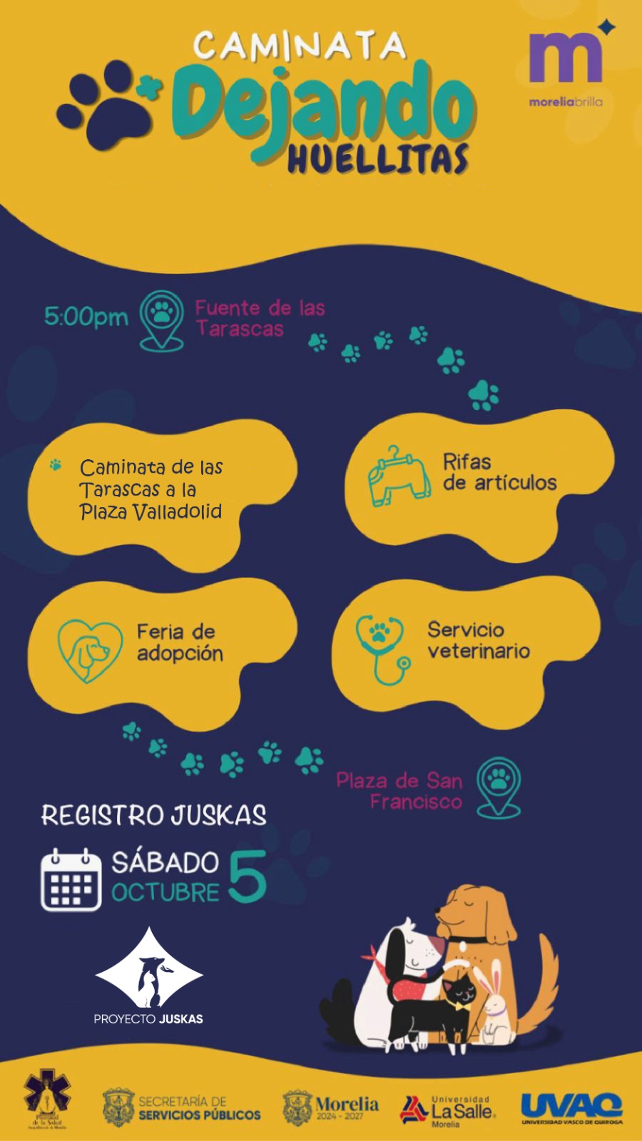 Además de la caminata, el evento incluye la rifa de artículos para animales domésticos, servicio de veterinario básico, módulos para promover la adopción de mascotas, así como el Centro de Atención Animal de Morelia estará presente con el registro para el Programa Juskas, además del registro para vacunación y esterilización de las mascotas de los ciudadanos.