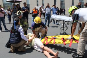 Donde se simuló un sismo de 8.1 con epicentro en Lázaro Cárdenas; se evacuaron a 438 personas de los tres edificios, en un tiempo de 3 minutos 55 segundos