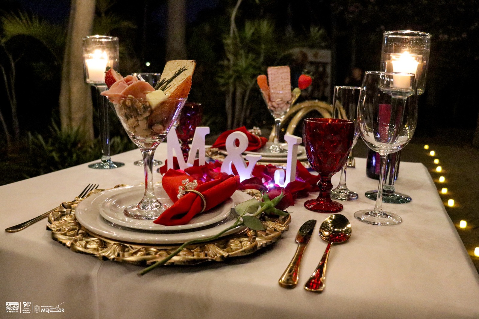 En el marco del Día de San Valentín, las instalaciones del parque Benito Juárez serán el escenario perfecto para pasar una velada romántica, en la que degustarán una exquisita cena gourmet que consistirá en crema de quesos con pimiento y crotones; lomo al romero, horneado en salsa de chipotle y un toque de vino tinto; como guarnición, una papa al doble horno; y de postre un delicioso pastel de chocolate con frutos rojos. Además, incluye una botella de vino tinto.