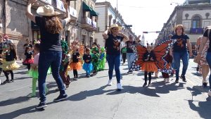 Mariposas, abejas, guacamayos, cocodrilos, leones en forma de disfraces tomaron la avenida Madero para celebrar el inicio de la primavera en Morelia.