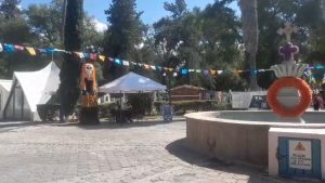 Así, los morelianos y quienes aquí habitan preparan y decoran con cempasúchil y pata de león las tumbas donde reposan quienes se adelantaron en el camino, previo al Día de Todos los Santos y el Día de los Fieles Difuntos en que algunos llegaron muy temprano para no ser alcanzados por el calcinante sol de este Otoño que ha resultado muy caluroso, mientras otros han llegado al mediodía, todos portando sus flores y a quienes dos catrinas enormes les reciben a su paso por la fuente al interior del recinto, que ha sido decorada con una corona naranja de la típica flor y una cruz de flores moradas que es el color del dolor y la penitencia.
