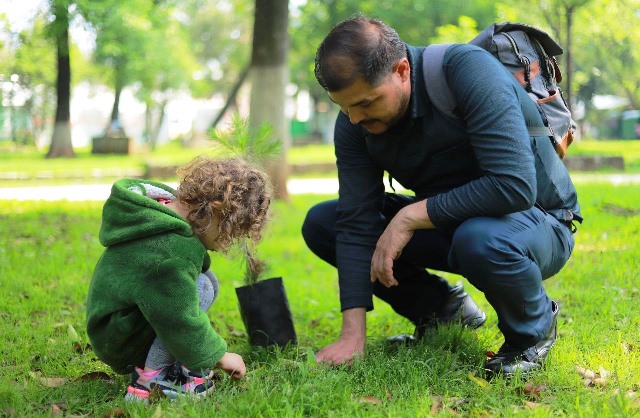 Cientos de niños y jóvenes y sus papás, sembraron mil árboles en distintos puntos de la ciudad