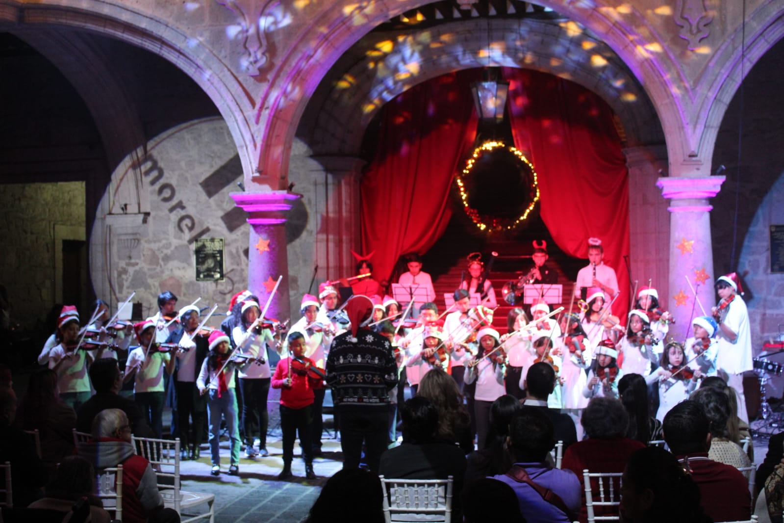 Palacio Municipal fue la sede de este concierto, a manera de pastorela, que contó con el acompañamiento de los ensambles de maderas de la Orquesta Filarmónica Juvenil de Morelia y se presentó un repertorio musical de diversos villancicos navideños, así como un par de piezas de música clásica.