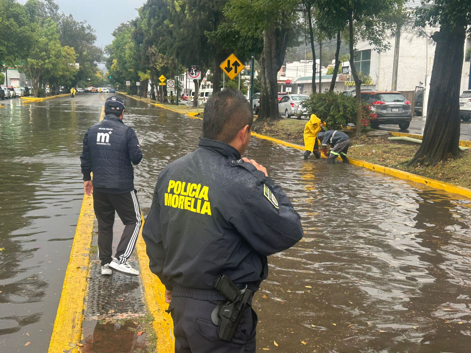 Personal de la Secretaría de Servicios Públicos, la Coordinación Municipal de Protección Civil y Bomberos y Policía Morelia, desplegaron un operativo en calles y avenidas, tras la tormenta que comenzó alrededor de las 13:00 horas.