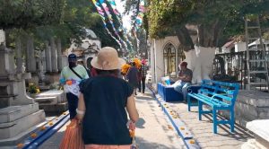Otros permanecerán todo el día en una especie de picnic para departir y los alimentos de manera respetuosa en el camposanto con sus ausentes, y quizá acompañarles con música en esto que es una celebración.
