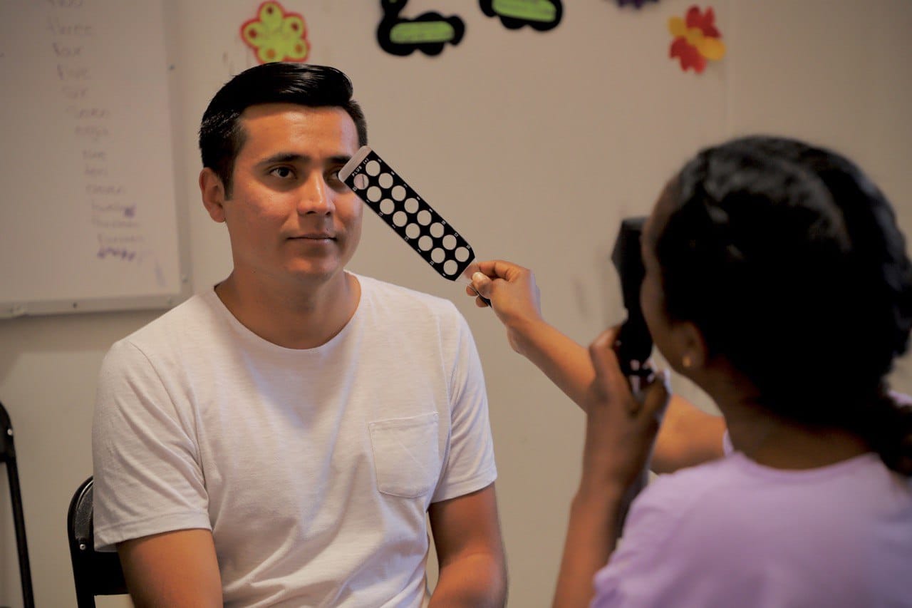 Con la participación de doce doctores y técnicos de Estados Unidos y Canadá, miembros del Club de Leones Internacional, se utilizaron cámaras de alta tecnología para detectar en menos de un minuto el aumento necesario para corregir los problemas visuales de las personas que se acercaron a los centros “Bien Común”.