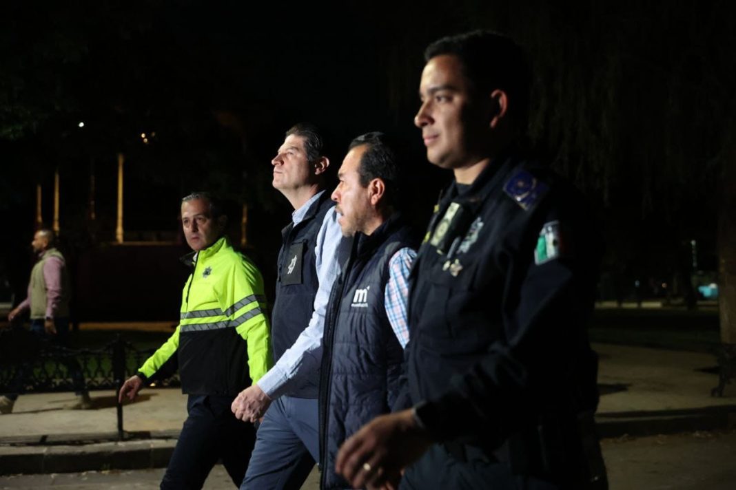 El Presidente Municipal, Alfonso Martínez Alcázar, encabezó el recorrido operativo de la Policía Morelia para el reforzamiento de la seguridad en puntos clave de la capital, mediante acciones de aumento de las luminarias públicas, cámaras de vigilancia y presencia policial.