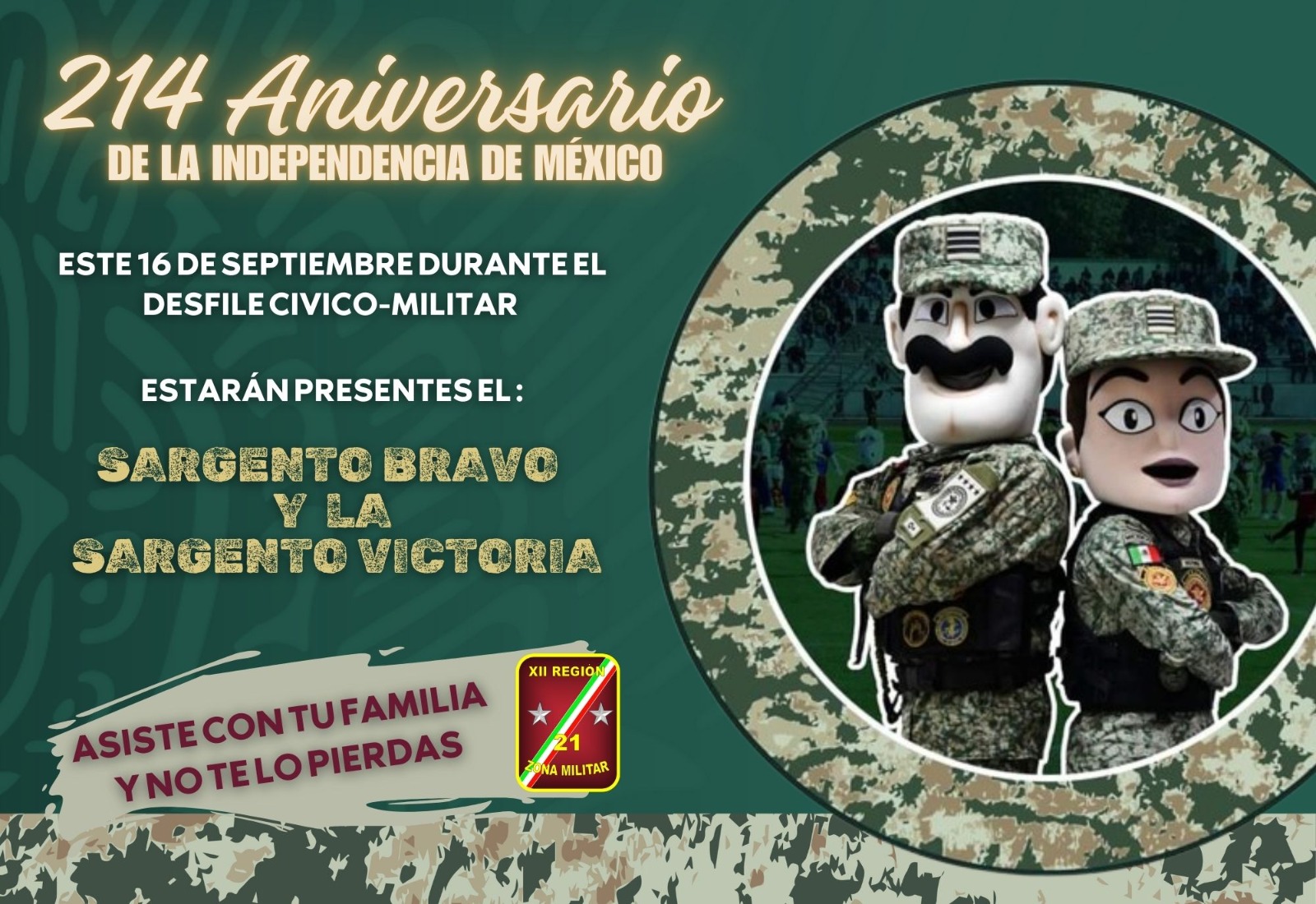 Morelia, Mich.- ¡Atención niños y niñas! el Sargento Bravo y la Sargento Victoria estarán caminando por todo el cuadro principal del Centro Histórico para festejar este 214 Aniversario de la Independencia de México con toda la población.