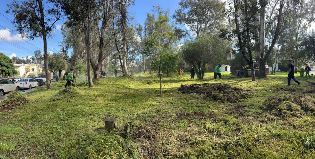 Brigadas de la Secretaría de Servicios Públicos y vecinas y vecinos, llevaron a cabo una nueva jornada de limpieza integral en el área verde de la colonia Juana Pavón y Fuentes de Morelia.