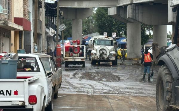 Desde temprana hora, la Secretaría de Servicios Públicos dio paso al barrido manual de los residuos con la ayuda de pipas de agua y maquinaria para dejar las calles sin rastros de lodo, evitando con ello la propagación de enfermedades infecciosa.
