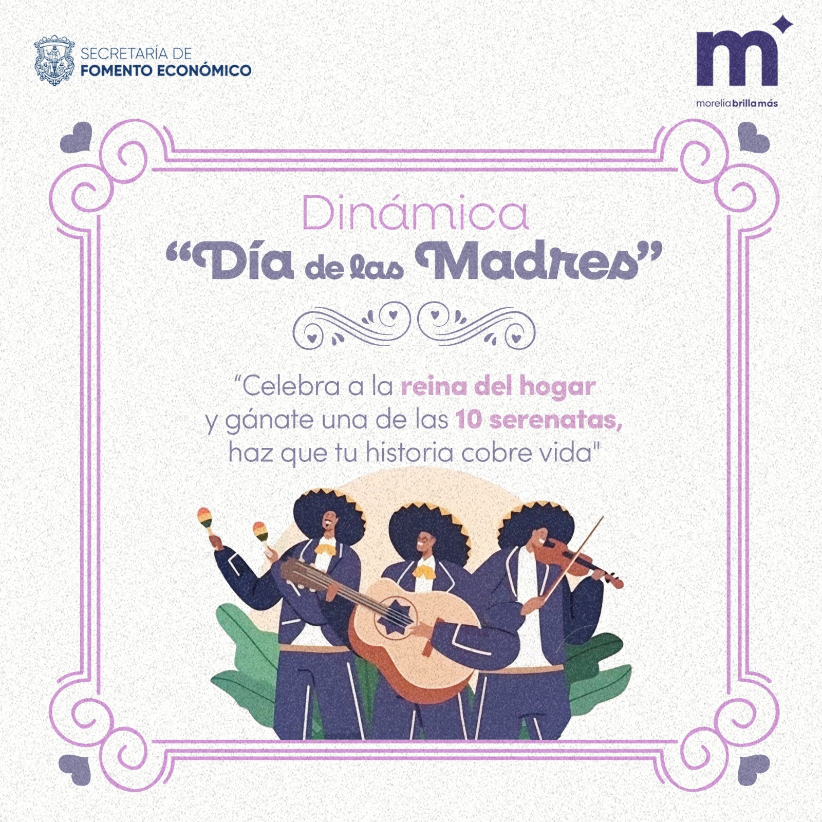 Morelia, Michoacán.- Con el propósito de promover a los mariachis e intérpretes de música vernácula, así como fortalecer los lazos familiares en este Día de las Madres, el Gobierno de Morelia encabezado por el presidente municipal, Alfonso Martínez Alcázar, por medio de la Secretaría de Fomento Económico (Sefeco) lanzó la dinámica “Historias que Brillan”.