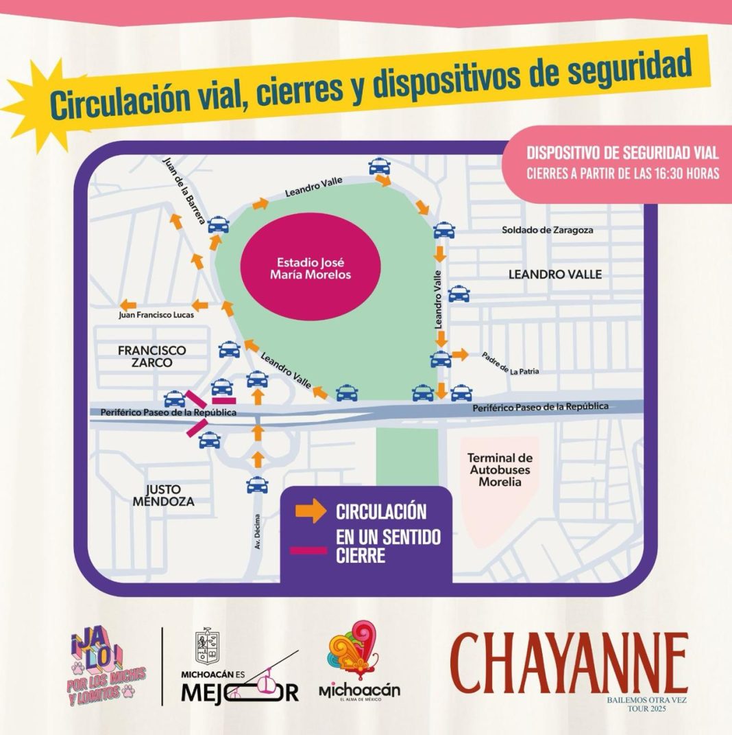 El gobierno de Michoacán informó que a través del Agrupamiento de Seguridad Vial se implementará un operativo en las inmediaciones del Estadio Morelos por el concierto gratuito de Chayanne, como parte del Festival Jalo por los Michis y Lomitos.