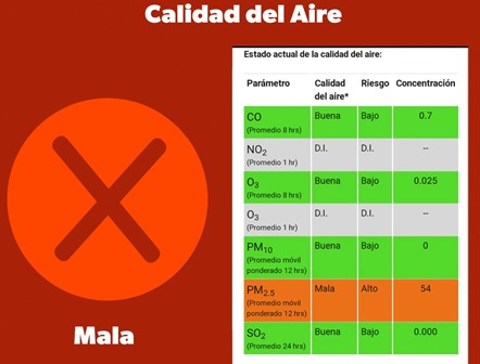 La estación de monitoreo ubicada en el Centro Histórico registró esta mañana un grado de contaminación en el aire que, de acuerdo a la clasificación del Sinaica, implica un riesgo alto para la población.