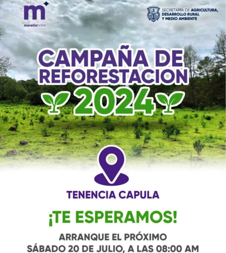 Este sábado inicia en Capula la campaña y tareas de reforestación para sembrar y plantar árboles y plántulas en la zona urbana y rural del municipio, con la meta de llegar a 1 millón o sobrepasar esta cifra, anunció Guillermo Marín Chávez, secretario de Agricultura, Desarrollo Rural y Medio Ambiente del gobierno municipal, quien convocó a toda la ciudadanía a participar y sumarse a esta tarea en pro del medio ambiente.