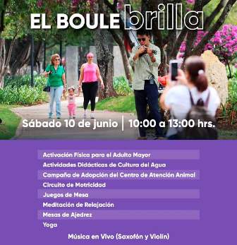 En este lugar, la cartelera que ha sido diseñada por parte de las diferentes dependencias de la administración municipal, está dirigida a toda la familia y gustos de cada uno de sus integrantes quienes podrán realizar actividades, como: mesas de ajedrez; meditación de relajación; juegos de mesa; activación física para el adulto mayor; circuito de motricidad; yoga; actividades didácticas de cultura del agua; y música en vivo (saxofón y violín).