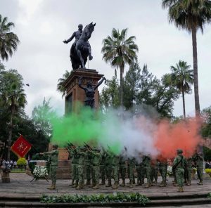 Enseguida el 12 Batallón de Infantería de la XXI Zona Militar lanzó la salva de honor a los pies de la figura ecuestre del Generalismo.