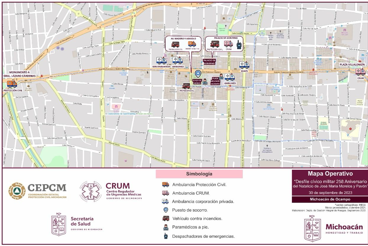 La Secretaría de Gobierno, a través de la Coordinación Estatal de Protección Civil, cuenta con el Plan Operativo para el 258 Aniversario del Natalicio de José María Morelos y Pavón, para este sábado 30 de septiembre.