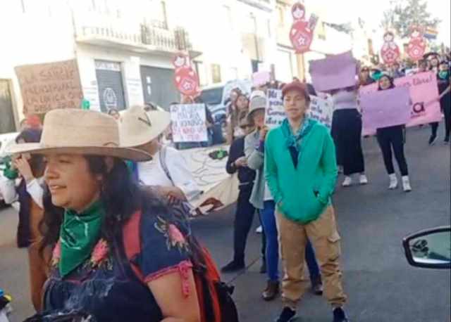 Sin ningún incidente y de manera pacífica avanzan por la calle Cuautla, «aquí están, aquí van las mujeres de Michoacán», entre sus consignas