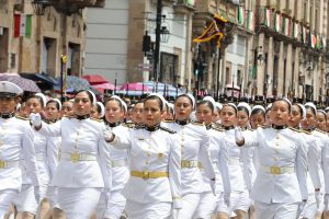 Alumnas de academias de belleza y moda desfilaron, vino el Pentatlón Deportivo Militar que abrió paso a la parada militar con los grupos de escuelas militarizados y de salvamento, como los colegios tácticos.