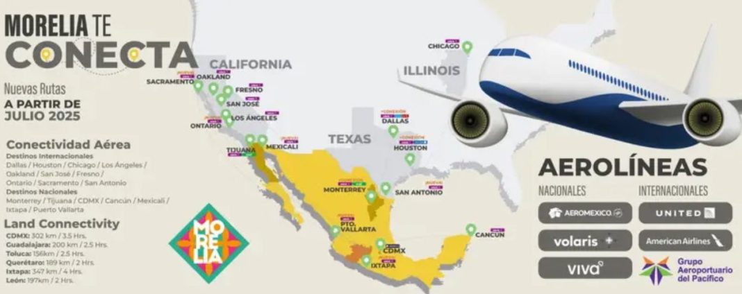Cabe destacar que Morelia cuenta con una conectividad aérea de siete destinos nacionales y 10 internacionales, con lo que durante los últimos meses, el turismo internacional se ha incrementado en la ciudad por lo que esta nueva conectividad refuerza el acercamiento con el turismo estadounidense, uno de los destinos emisores más importantes para Morelia.