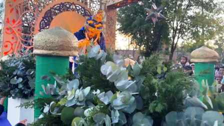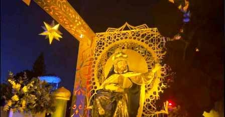 En enormes carros alegóricos jalados por grúa, Melchor, Gaspar y Baltazar circularon a vuelta de rueda esta tarde noche