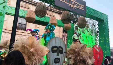 Los Reyes Magos iniciaron su paso en caravana por esta capital: Melchor en un carro alegórico color naranja Gaspar montado en uno de tono azul y Baltazar en el de color verde, que llevaban además música de los lugares de donde vienen cada uno de ellos, es decir, el primero de Europa el segundo de Asia y el tercero de África, respectivamente.