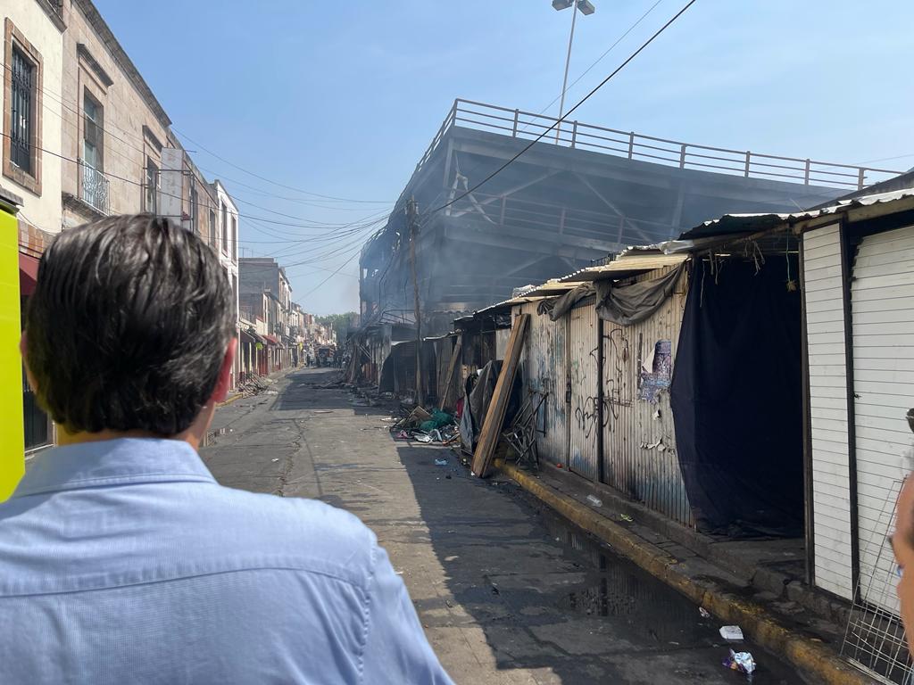Detalló que el fuego dañó el 16.5% de 870 puestos del Mercado Independencia, en la zona Poniente de inmueble, entre las calles Andrés del Río y Ana María Gallaga, en la que 144 comercios resultaron afectados, la mayoría con pérdida total, así como el estacionamiento que resultó colapsado.